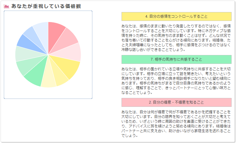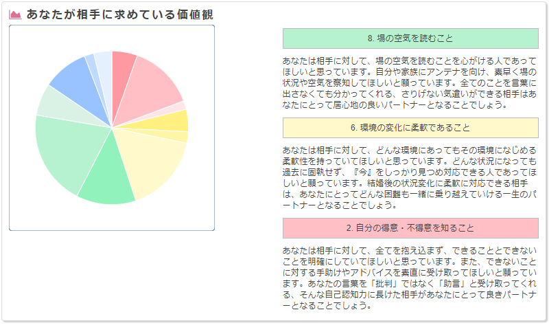 お相手に、大切にしてもらいたい価値観の優先順位を測定しています。